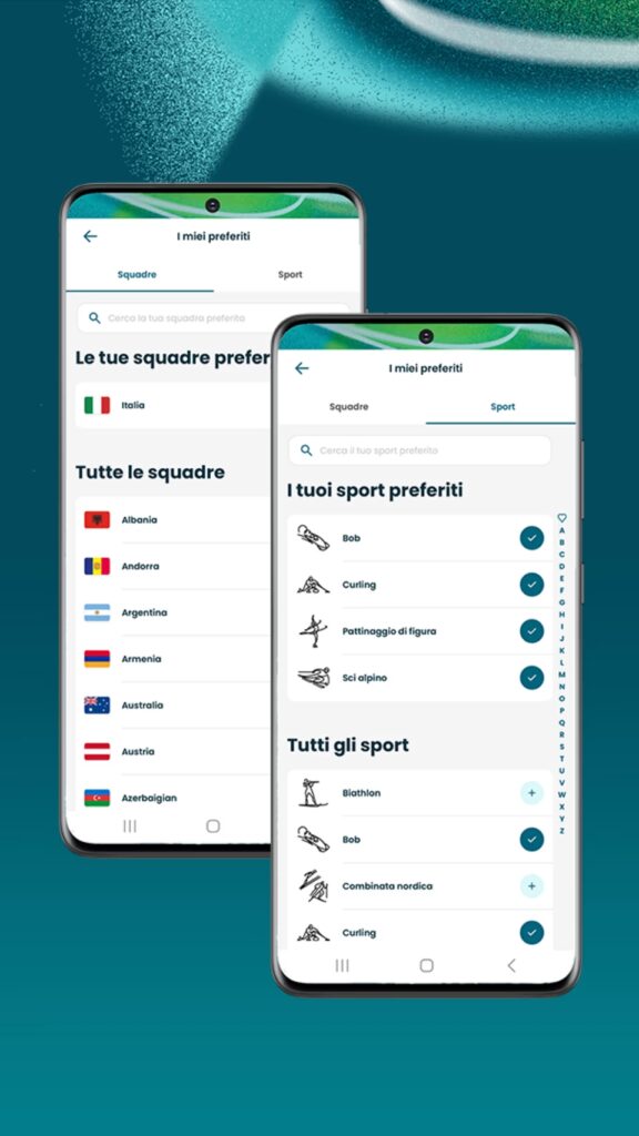• Notifiche personalizzate: possibilità di selezionare sport, atleti o eventi preferiti per ricevere aggiornamenti in tempo reale